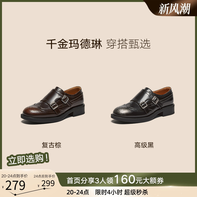 淘宝天猫百思图2025春季新款潮酷复古英伦风布洛克牛津鞋皮鞋女鞋CD462AM5优惠券折扣价格–彩云间