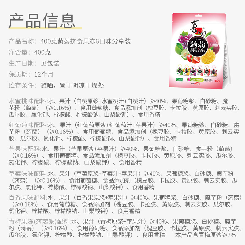 > 喜之郎蒟蒻果汁果冻多口味魔芋代餐休闲食品儿童零食小吃