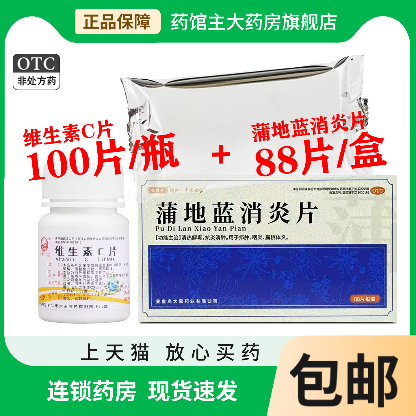 维生素C片100片蒲地蓝消炎片88片扁桃体炎咽炎抗炎消肿清热解毒