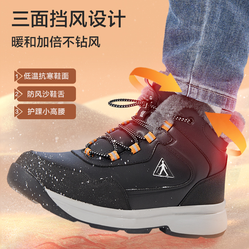 > 足力健老人鞋正品冬加绒大棉鞋零下40度防寒鞋羊毛皮毛一体雪地靴