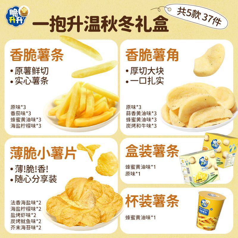 脆升升新品一抱升温馨秋天礼盒经典蜂蜜薯条薯片休闲零食