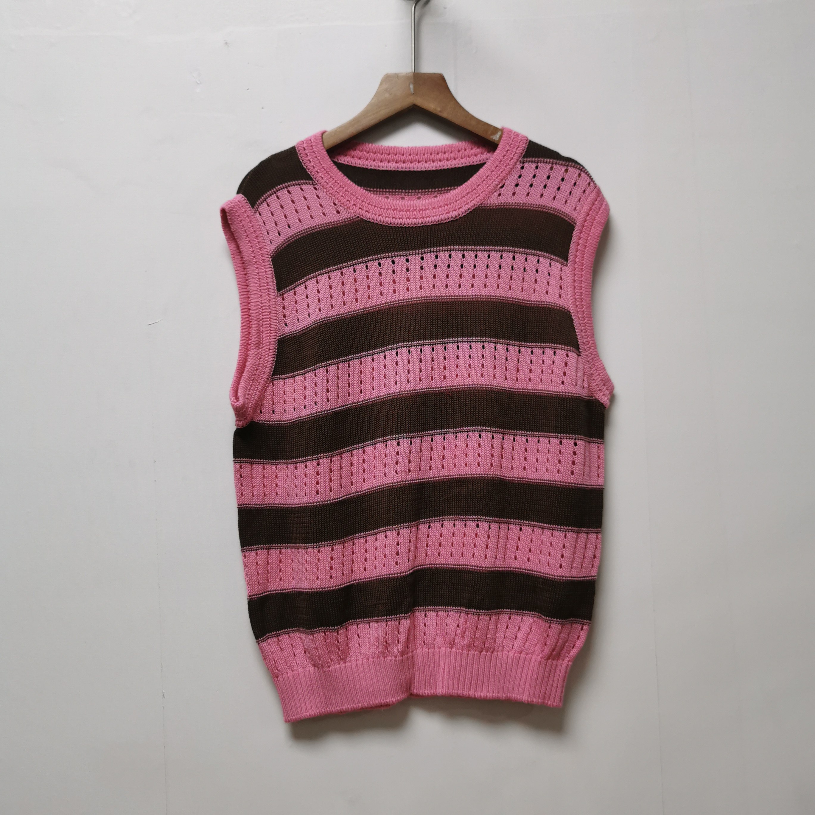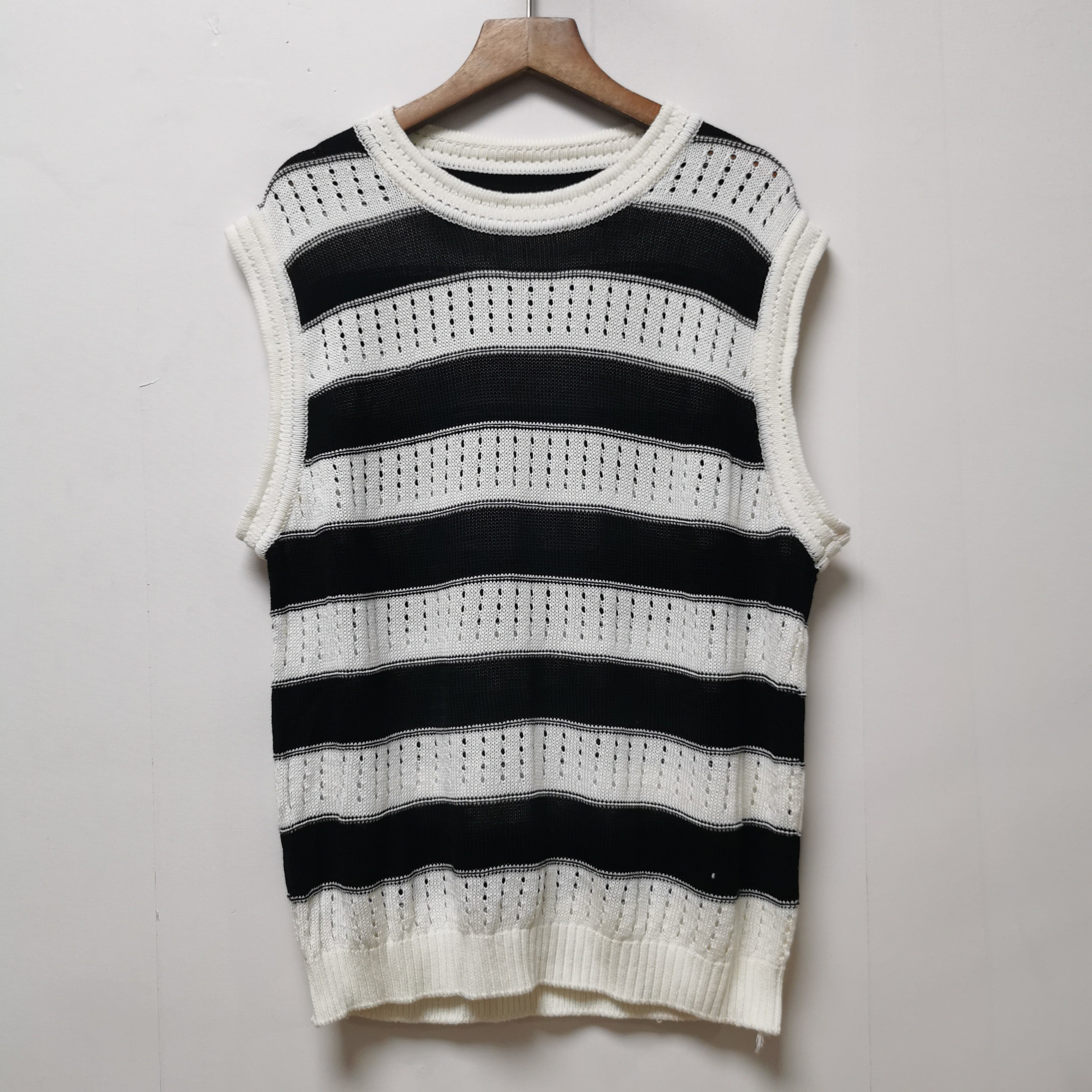 您的位置: 设计师样板去标2025夏季时尚百搭圆领条纹针织无袖背心女H613