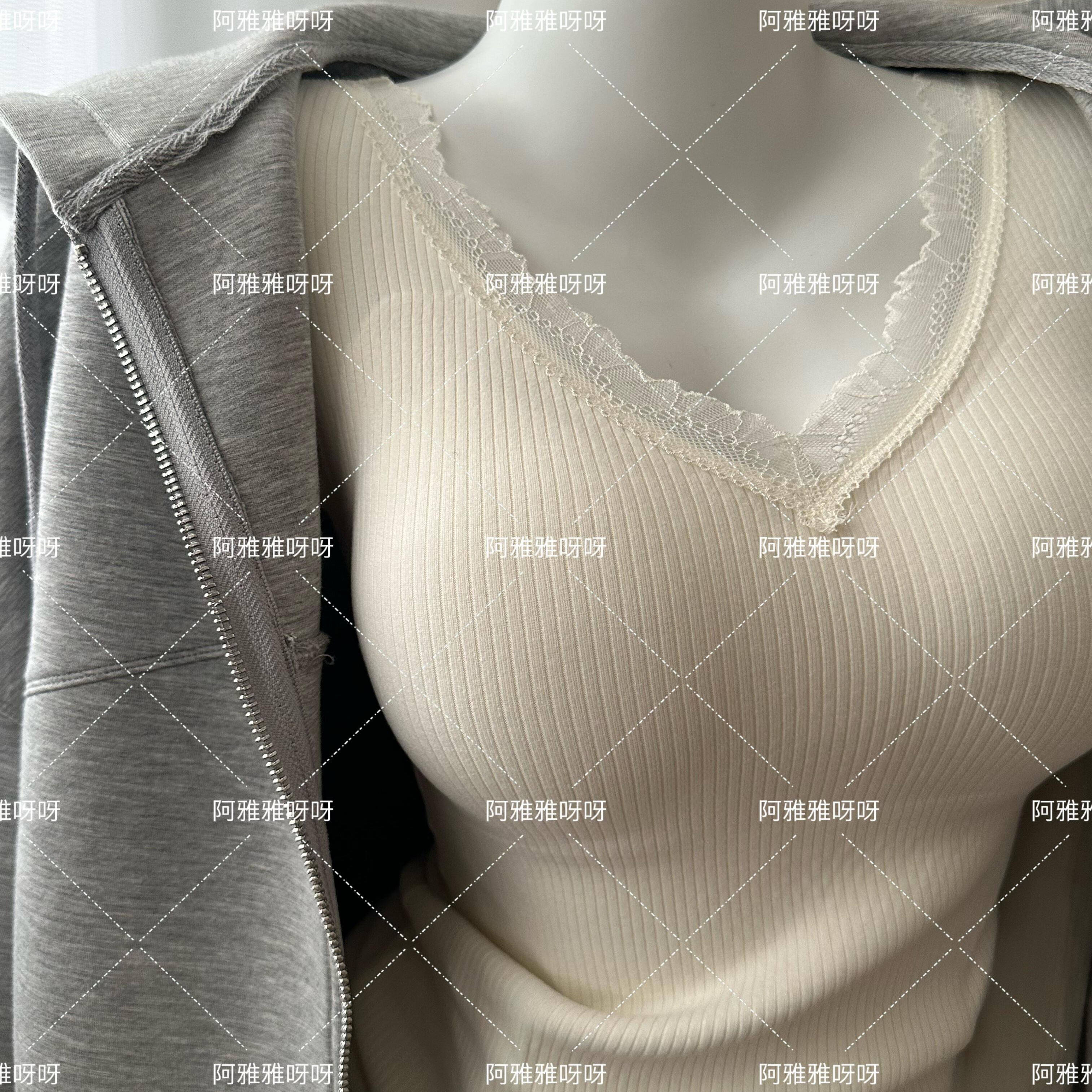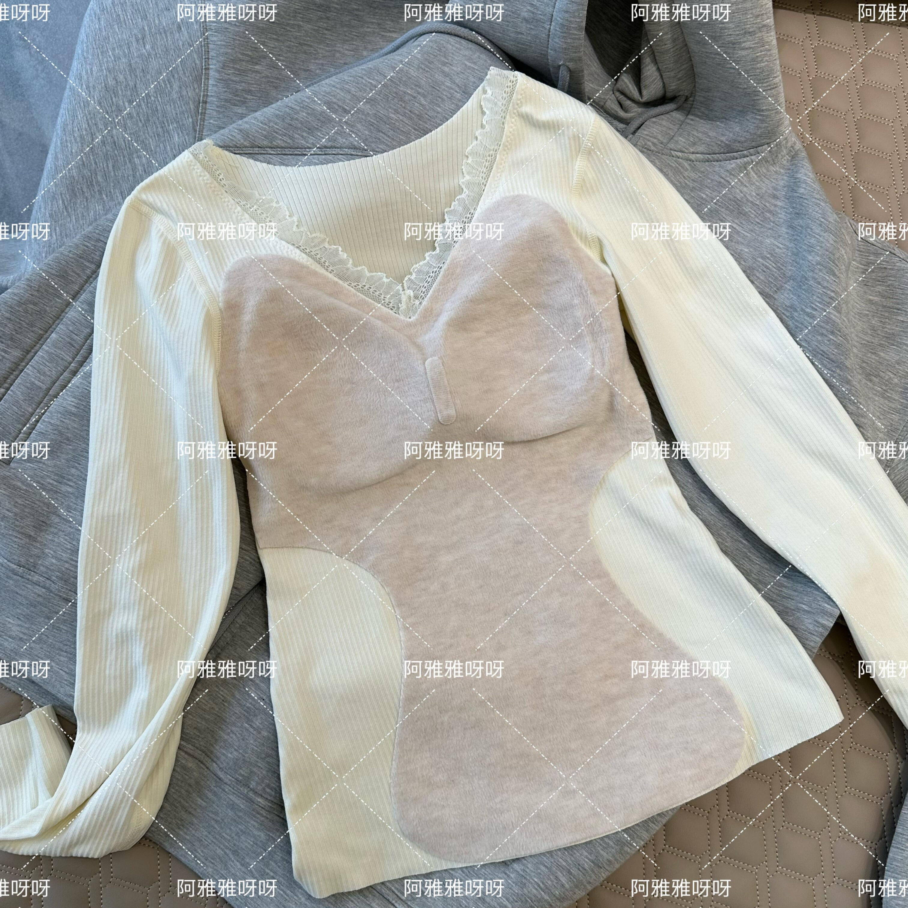 阿雅雅呀呀长袖版保暖内衣女带胸垫蚕丝加绒加厚发热内搭外穿上衣