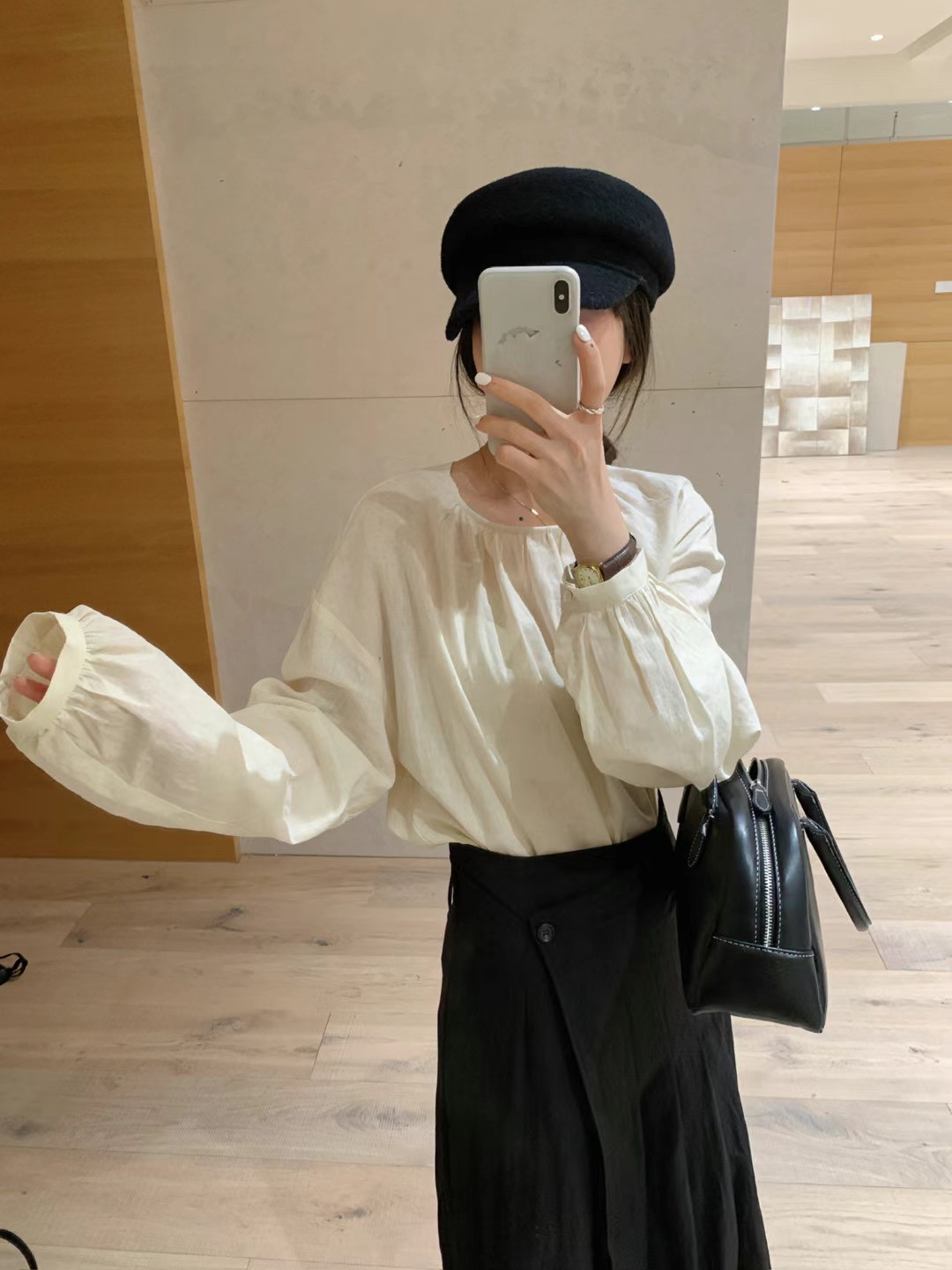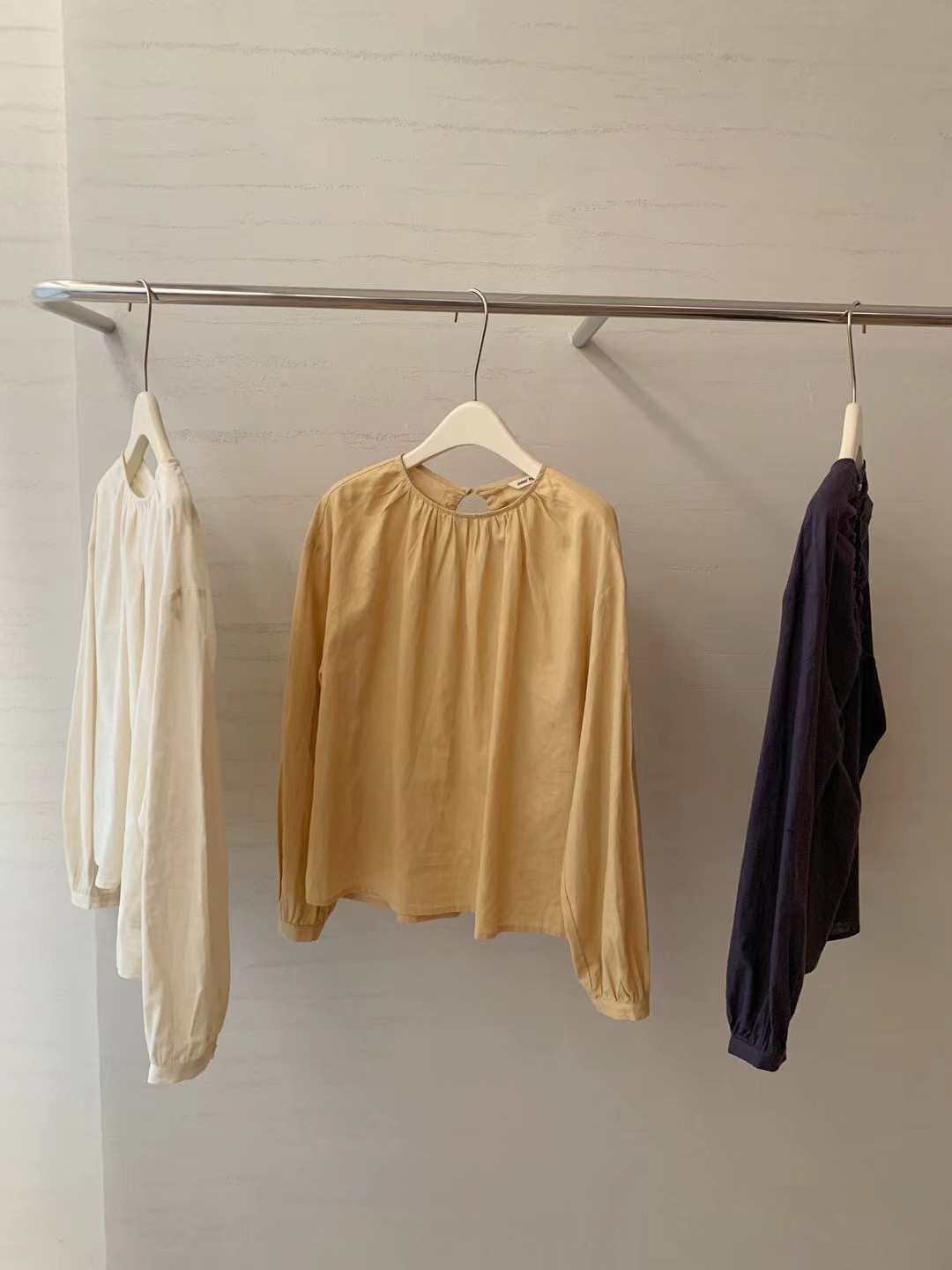 现货inner ego温柔风日系设计感小众泡泡袖衬衫上衣 背后镂空特别