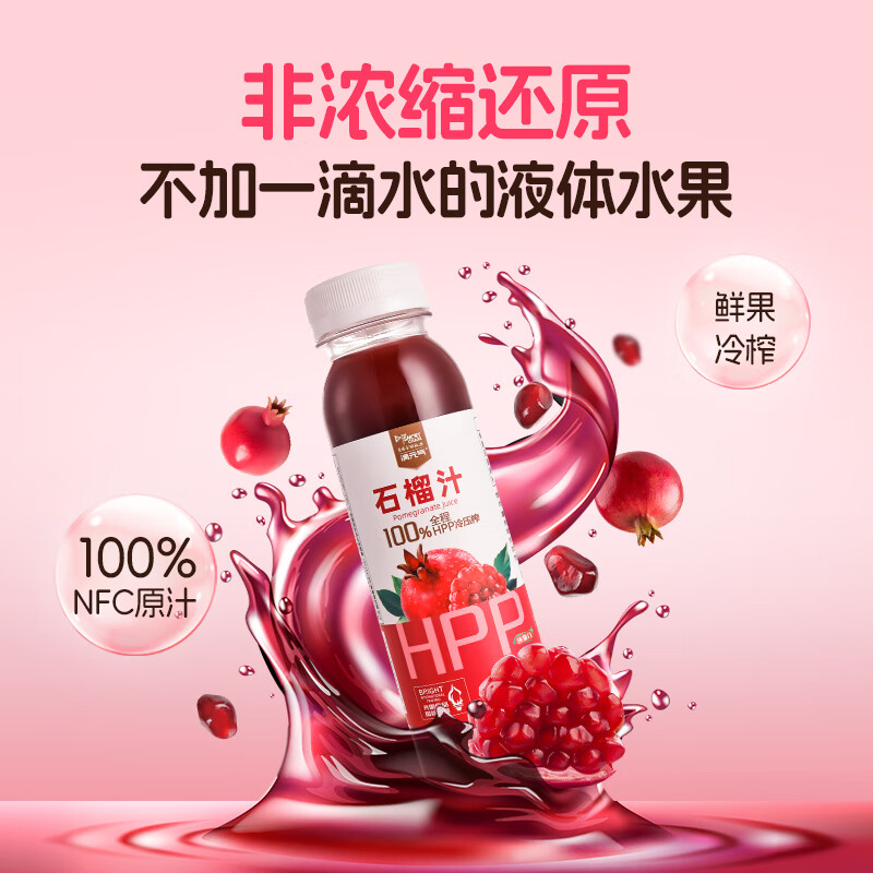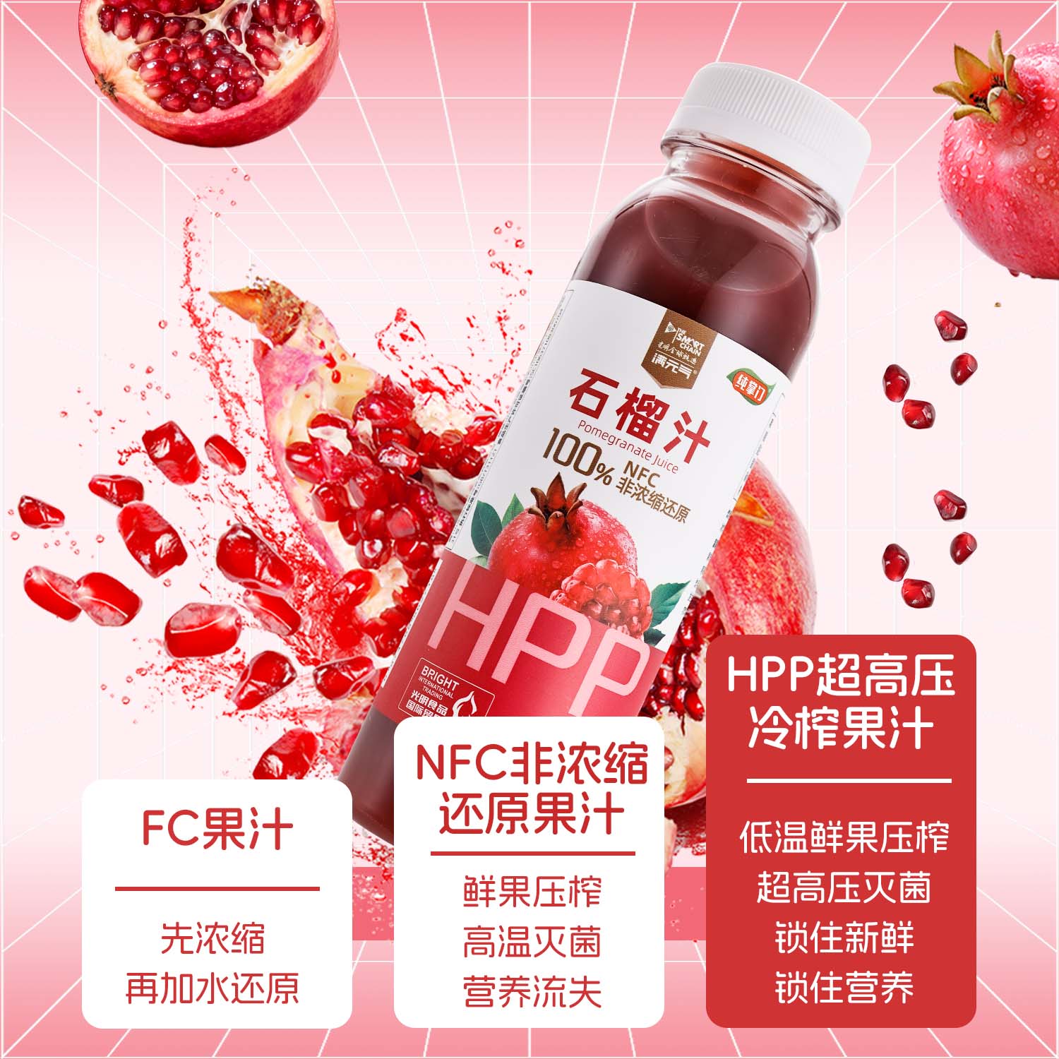 hpp果汁鲜榨石榴汁100%纯果汁饮料无添加天然nfc果汁非浓缩原液