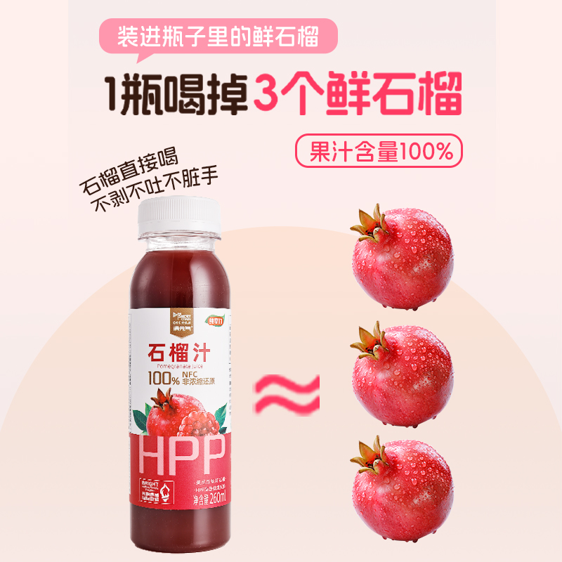 您的位置: hpp果汁鲜榨石榴汁100%纯果汁饮料无添加天然nfc果汁非浓缩原液