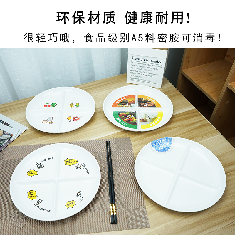 您的位置: 密胺3333+TR90减肥减脂餐盘平衡膳食定量餐盘健身三 四格分餐盘子
