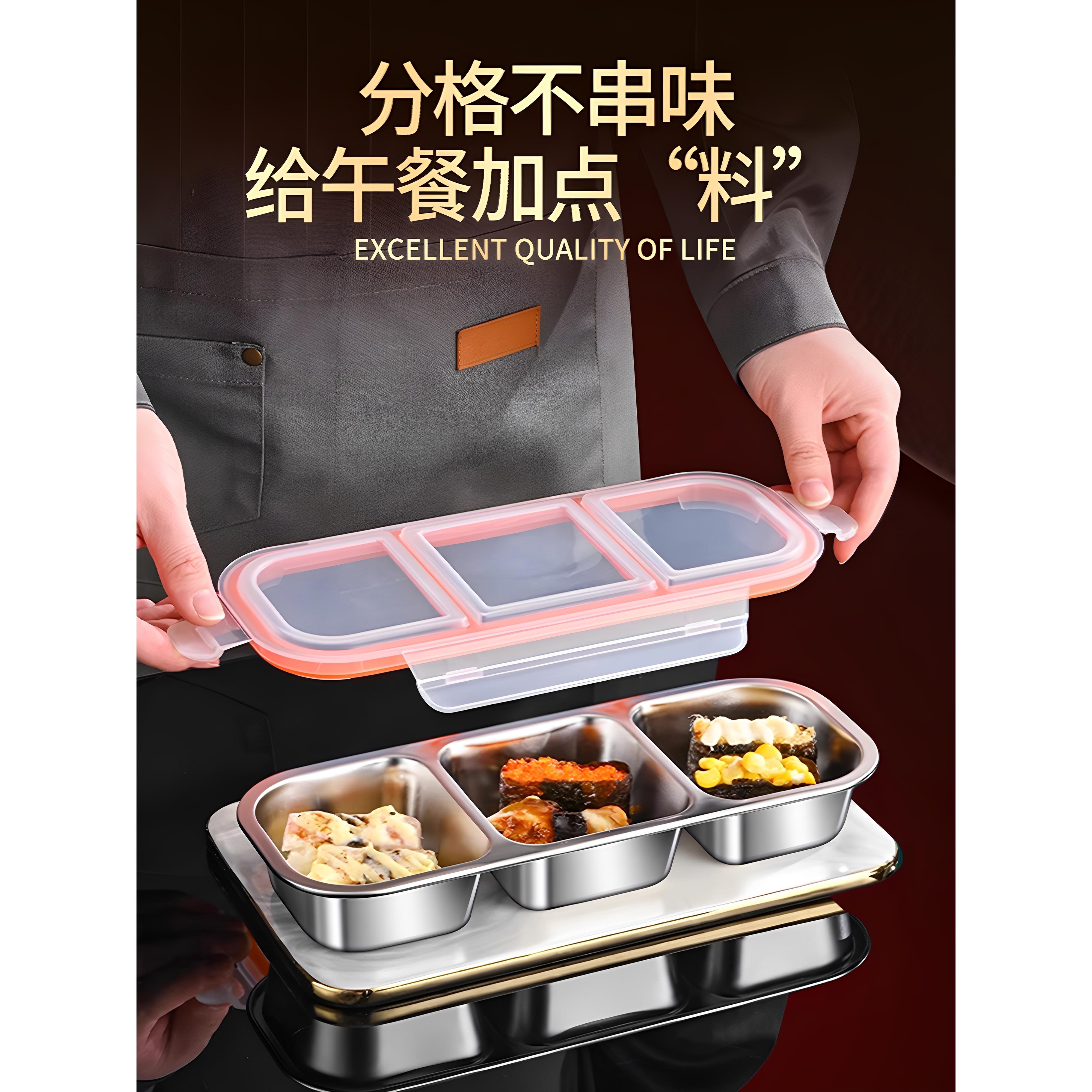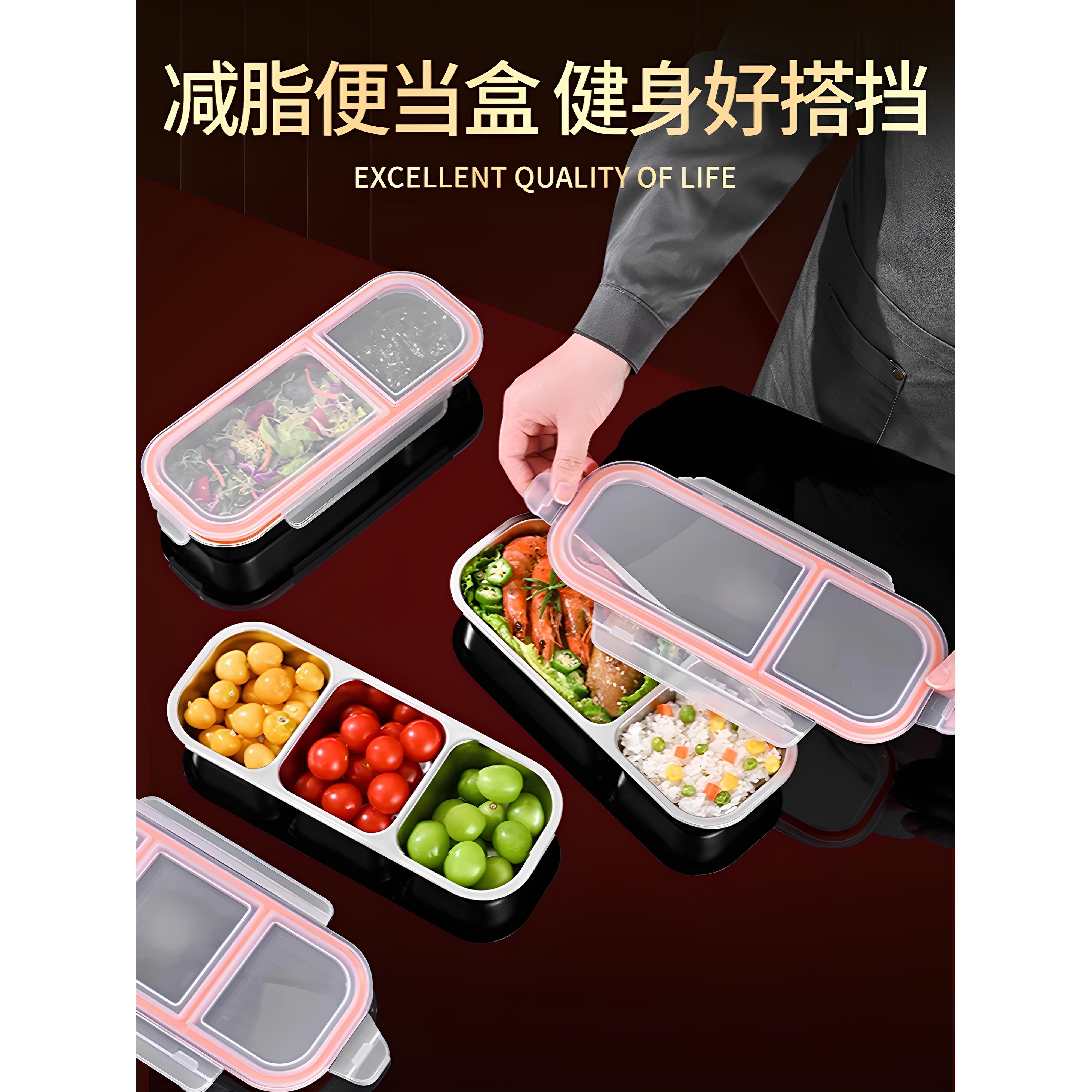 304不锈钢三格保鲜盒密封减肥减脂定量分装小饭盒便携水果便当盒