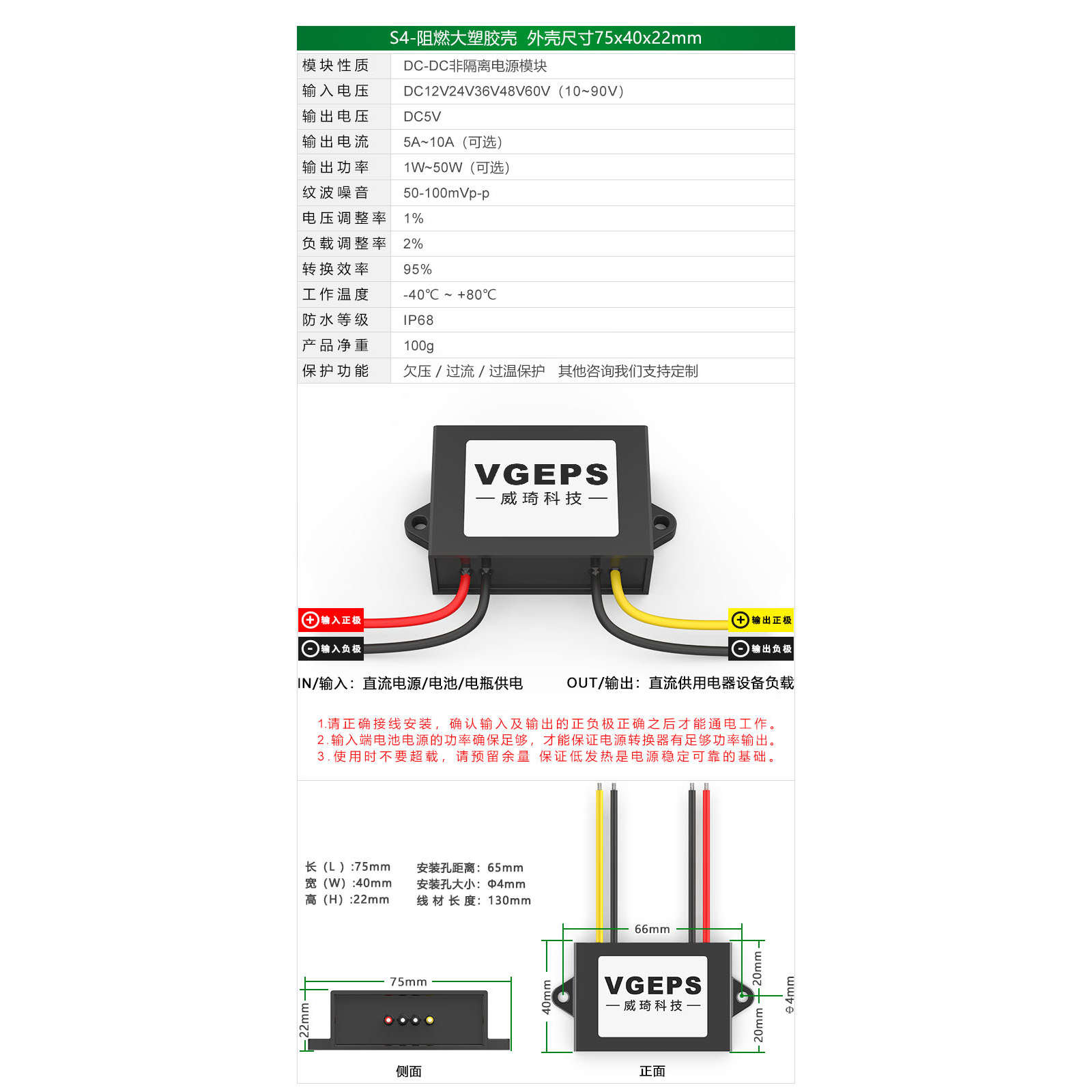 12V24V36V48V60V72V转5V1A-40A直流电源转换器10-90V变5V降压模块