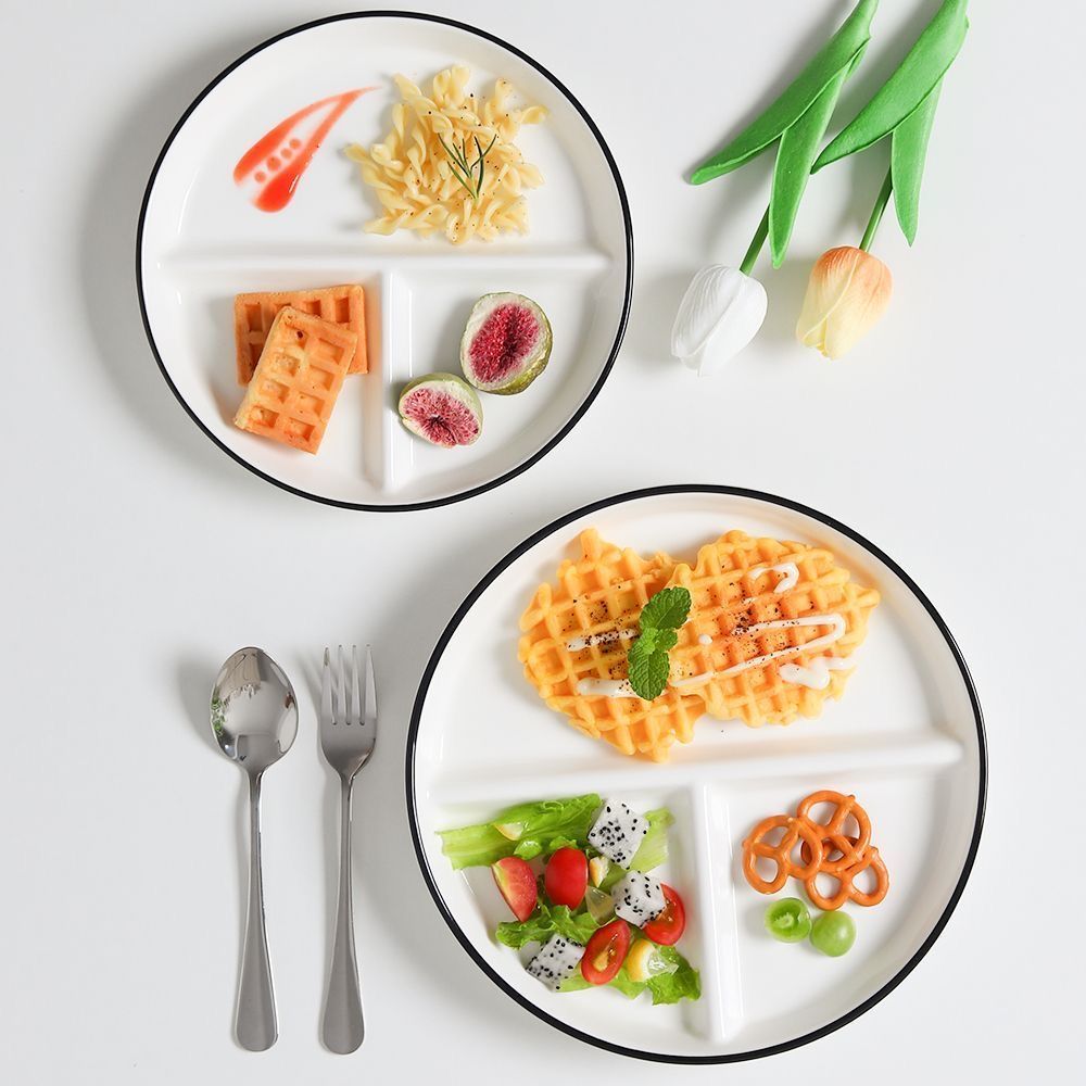 您的位置: 简约陶瓷减脂分格餐盘儿童定量三格早餐分餐盘大人减肥营养均衡盘