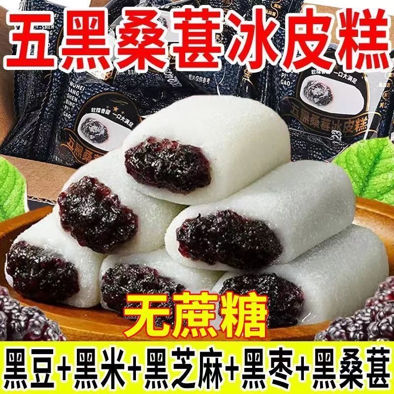 减肥解馋小零食糖人专用主食代餐五黑桑葚冰皮糕健康饱腹无蔗糖黑芝麻黑枣传统糕点低脂宿舍学生党健身口感Q弹易携补营养方便吃