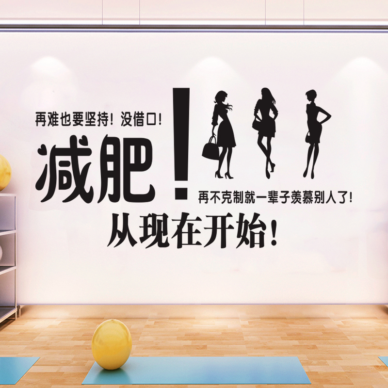 淘宝天猫创意美容院养生会所减肥玻璃贴纸健身房墙面装饰贴纸减肥励志墙贴优惠券折扣价格–彩云间