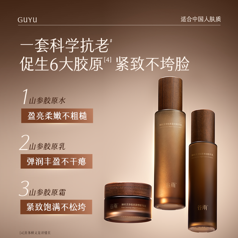 > 【重磅升级】谷雨山参胶原水乳套装抗老紧致护肤品妈妈补水抗皱