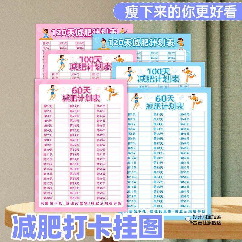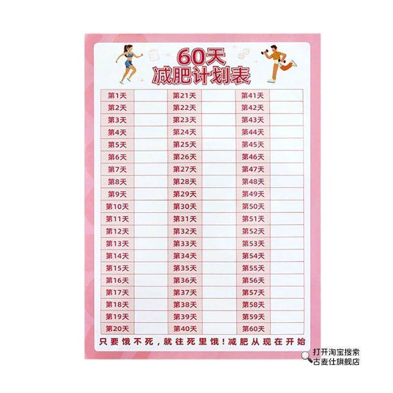 淘宝天猫60天减肥体重打卡计划表墙贴120天健身自律百天瘦身百日减重提醒监督神器励志挂墙自我体重变化管理日记录表优惠券折扣价格–彩云间