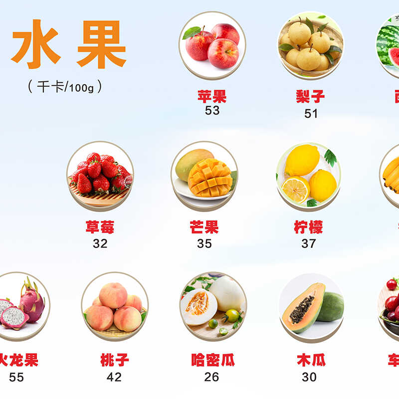您的位置: 常见食物热量对照表海报食物热量含量墙贴健身房海报减肥中心贴纸