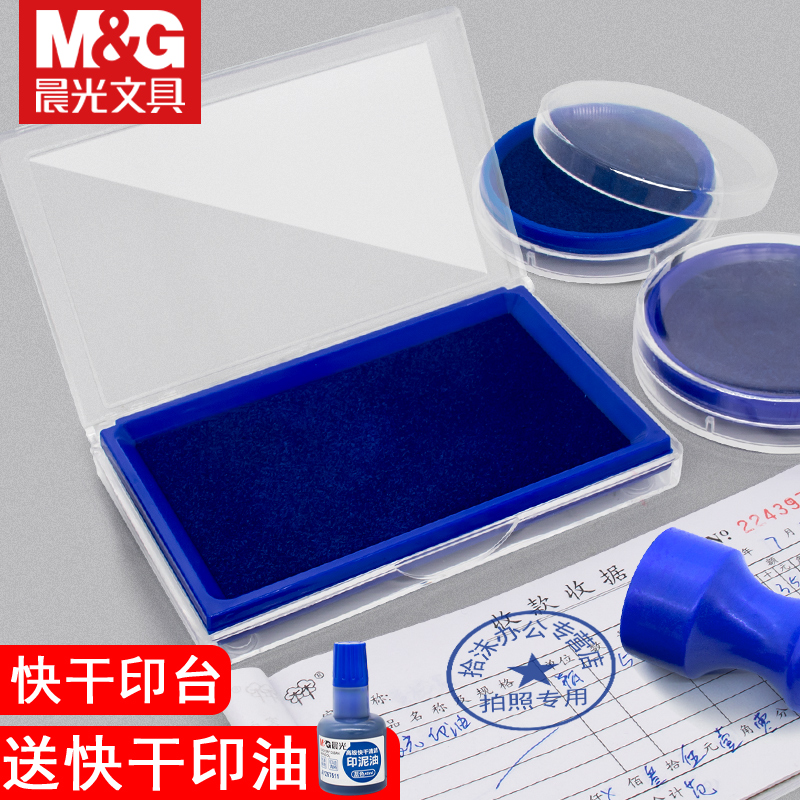 淘宝天猫晨光蓝色快干印台长方形透明蓝色橡皮章印泥印油快干大号印尼便携按手印财务会计办公用品盖章指纹印台海绵芯优惠券折扣价格–彩云间