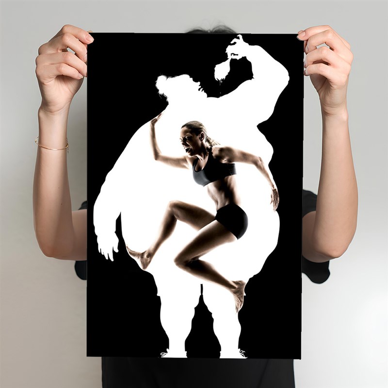 男女体脂对比图装饰画健身房挂画墙壁画减肥励志寝室肌肉健身海报
