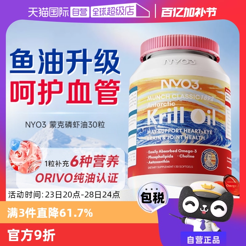 淘宝天猫【自营】NYO3挪威蒙克磷虾油软胶囊鱼油升级omega-3低密度中老年优惠券折扣价格–彩云间
