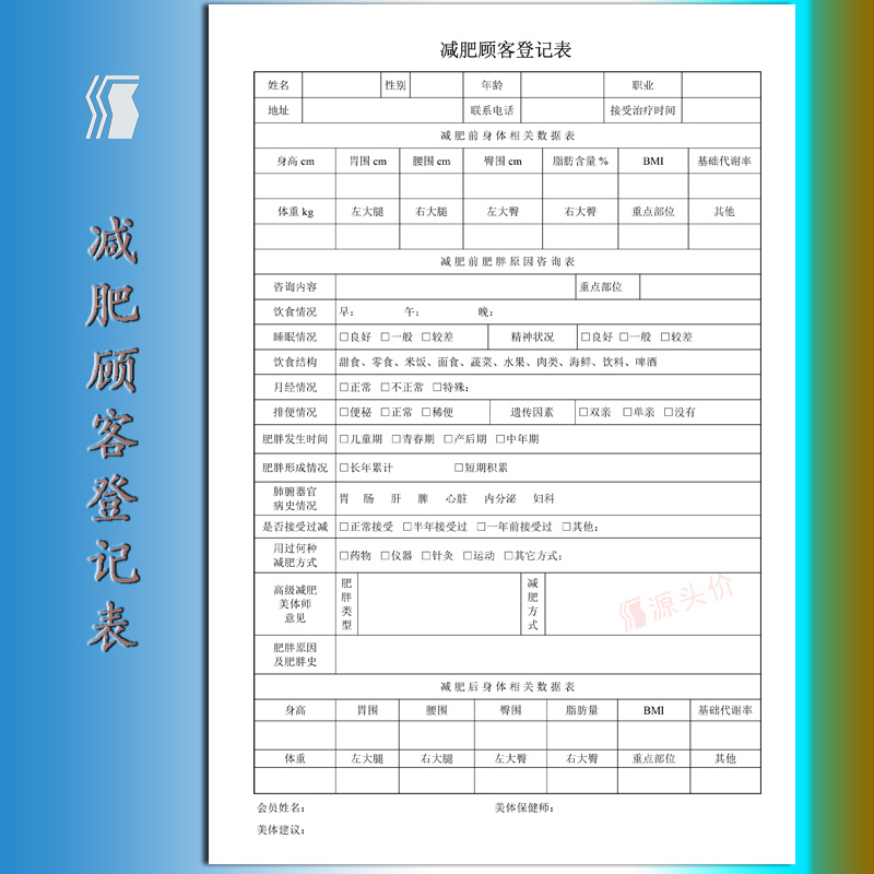 淘宝天猫减肥顾客登记表美容档案每日记录本养生美体瘦身客户体重分析资料优惠券折扣价格–彩云间