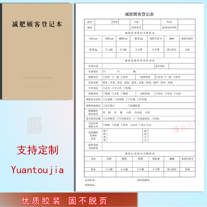 您的位置: 减肥顾客登记表美容档案每日记录本养生美体瘦身客户体重分析资料