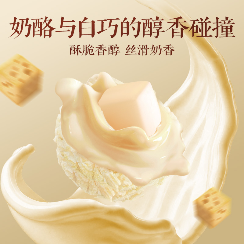 浓浓的法式奶酪味,咬开还有一整颗Kiri冻干奶酪块,奶香很足,五层口感,酥酥脆脆的,像白巧克力版本的费列罗,香甜的小零食