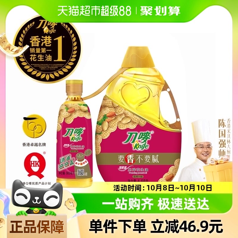 刀唛臻原香花生油4.68L+0.9L物理压榨健康一级食用油