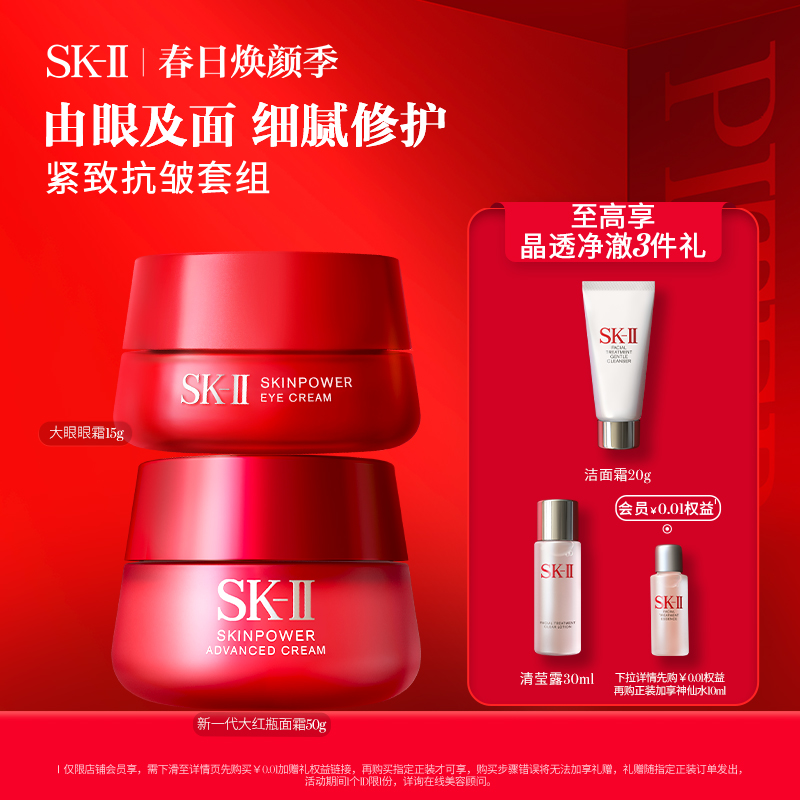 【赠全新大红瓶面霜15g*3+全新大红瓶面霜2.5g*2+全新大红瓶眼霜2.5g*6】SK-II官方旗舰店!必备大红瓶面霜+眼霜组合,抚平肌肤,协同抗老,一扫暗黄肤色!