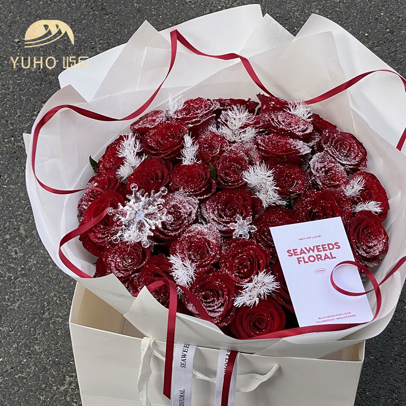 屿后 圣诞节落雪玫瑰包花纸鲜花玫瑰花束喷雪diy手工节日包装材料