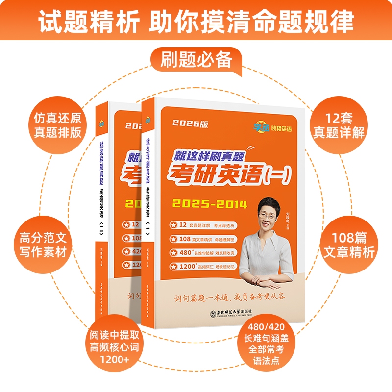 刘晓艳考研英语真题英语一二历年真题备考2026刷透真题超详解析译文高分范文写作素材长难句语法点核心高频单词汇2014-25lxy单词书