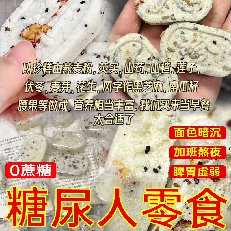 糖人专用主食代餐0脂肪0卡0反式脂肪酸无糖无添加剂坚果茯苓八珍糕芡实糕粗粮高钙膳食纤维传统糕点网红女神轻食解减肥馋小零食