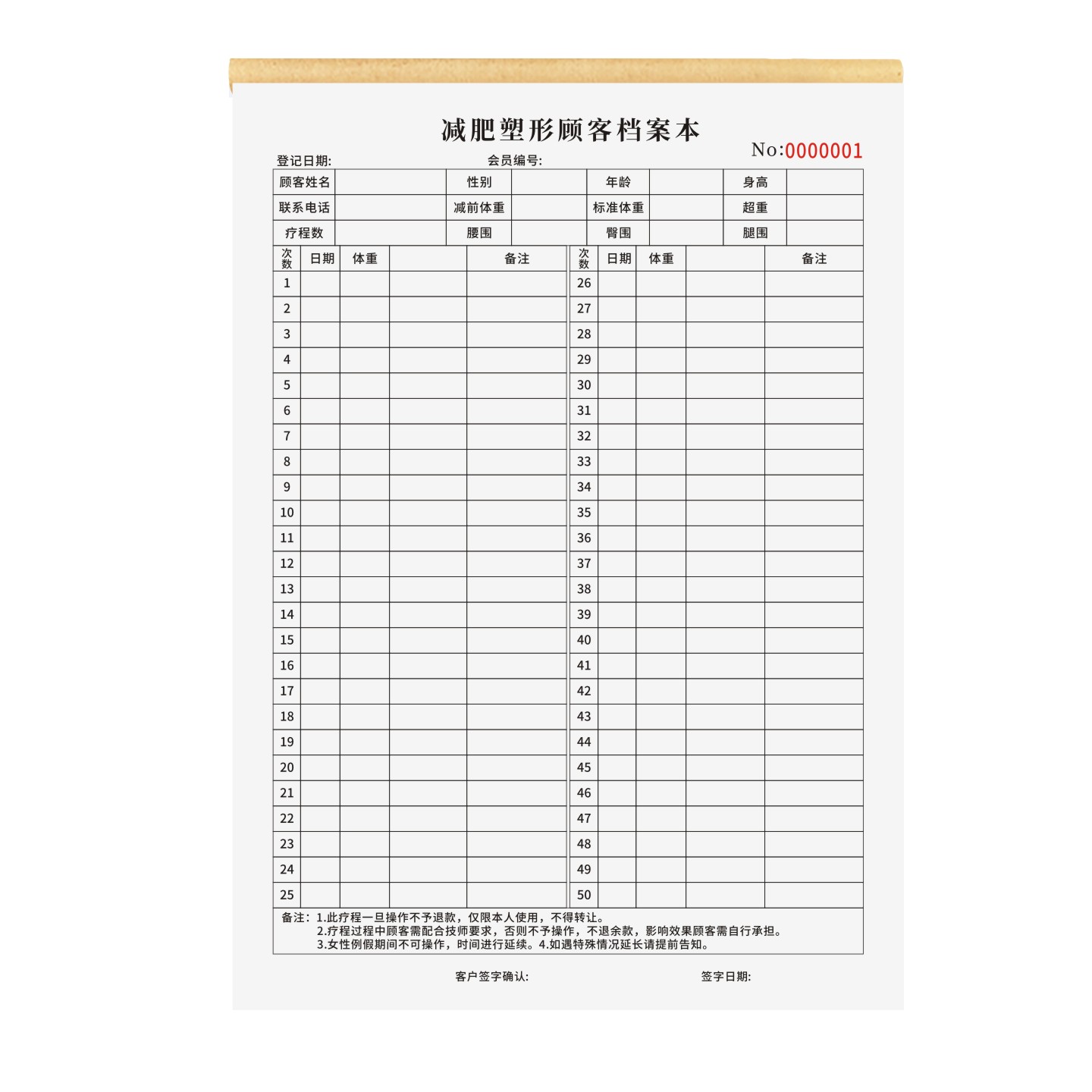 减肥塑形顾客档案本定制订做通用版美容院减肥瘦身顾客档案本塑型客户登记册会员体重管理记录减肥瘦身记录本