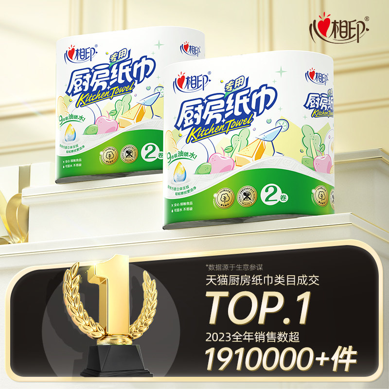 淘宝天猫心相印厨房纸巾厨房卷纸吸油吸水纸食品级料理纸厨房专用8大卷优惠券折扣价格–彩云间