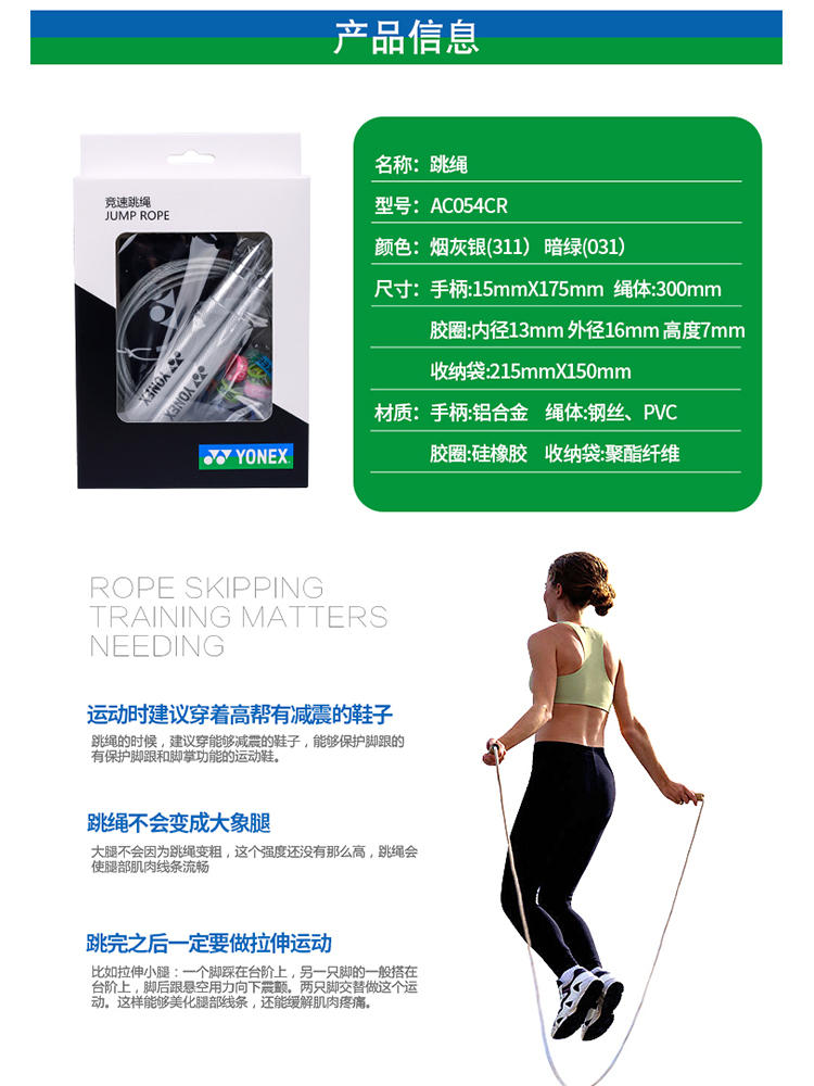 2024YONEX尤尼克斯yy羽毛球竞速跳绳 AC054CR 锻炼运动健身减肥