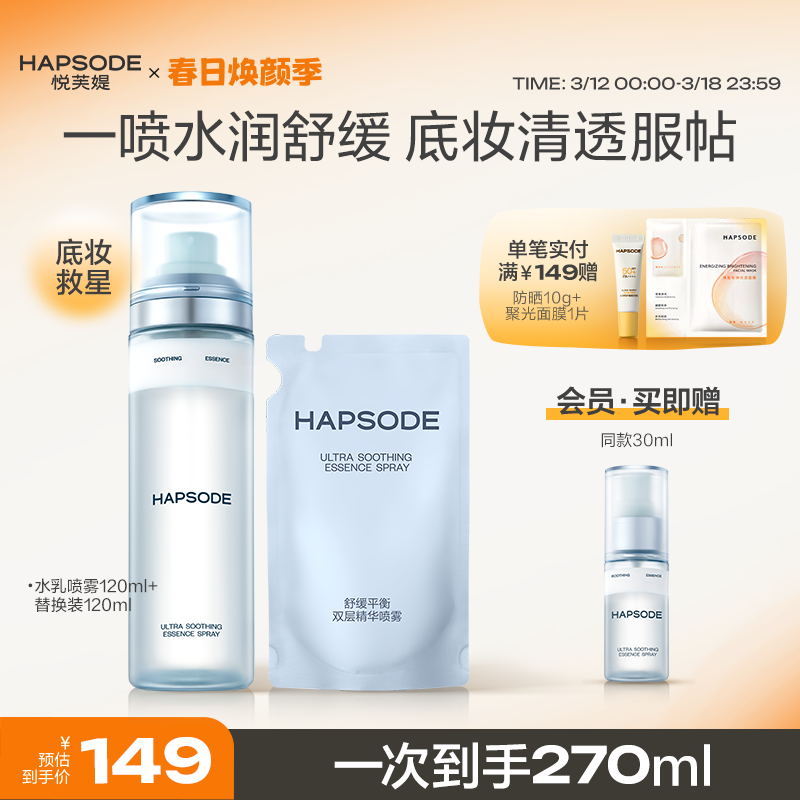 【送:同款喷雾40ml,叠加200-20品类券,凑单到手低至89r】为敏肌专研的,可以喷的修护水乳,快速补水舒润,修护换季敏感,轻薄不油腻。