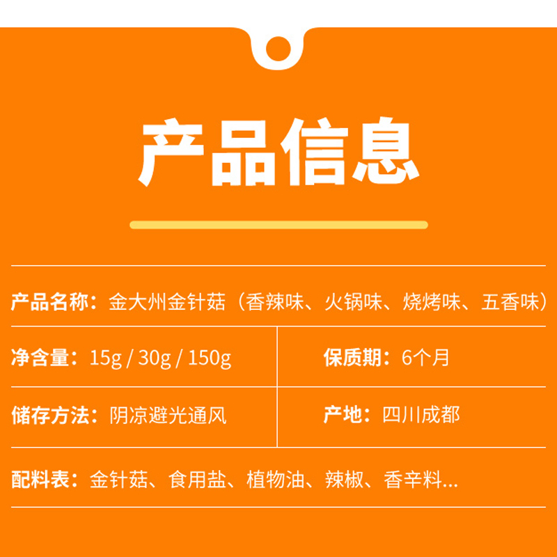 您的位置: 金大州金针菇60g大包装超市同款金大洲零食香辣麻辣下饭菜旗舰店