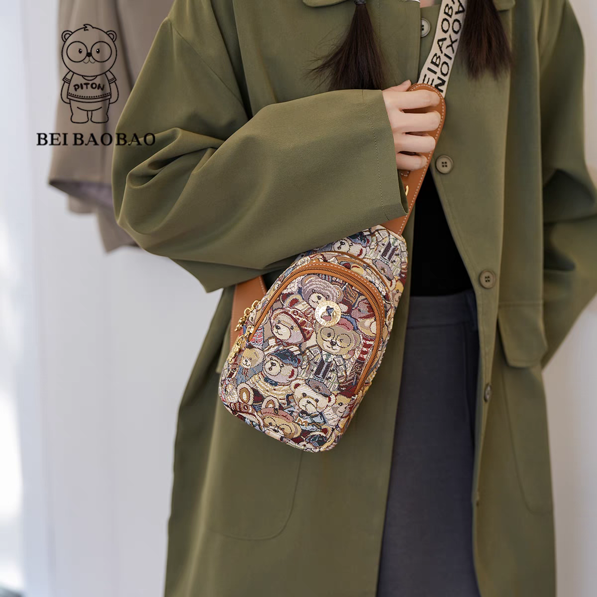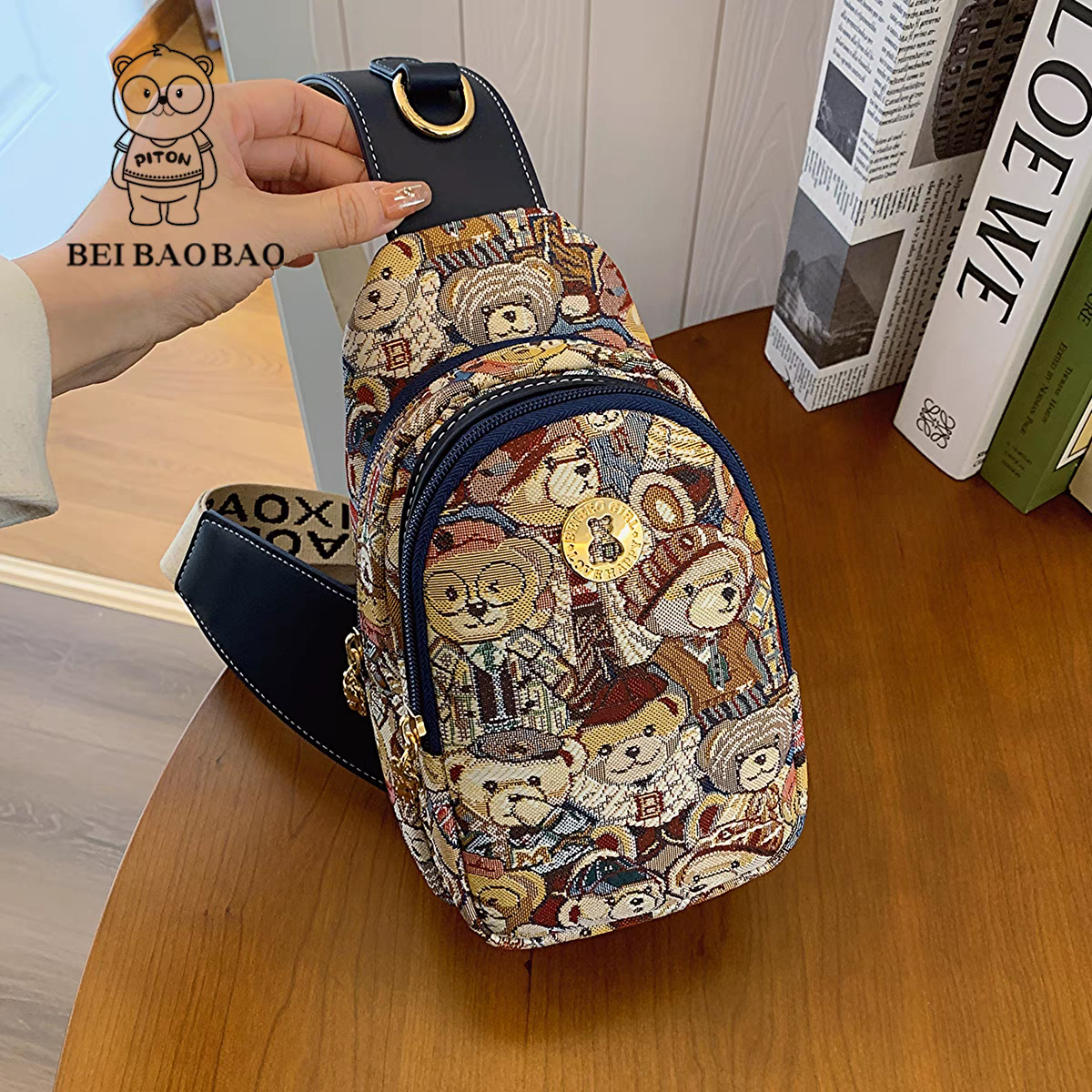 北包包洋气小熊高级感刺绣帆布包新款胸包女包时尚腰包小众包包女