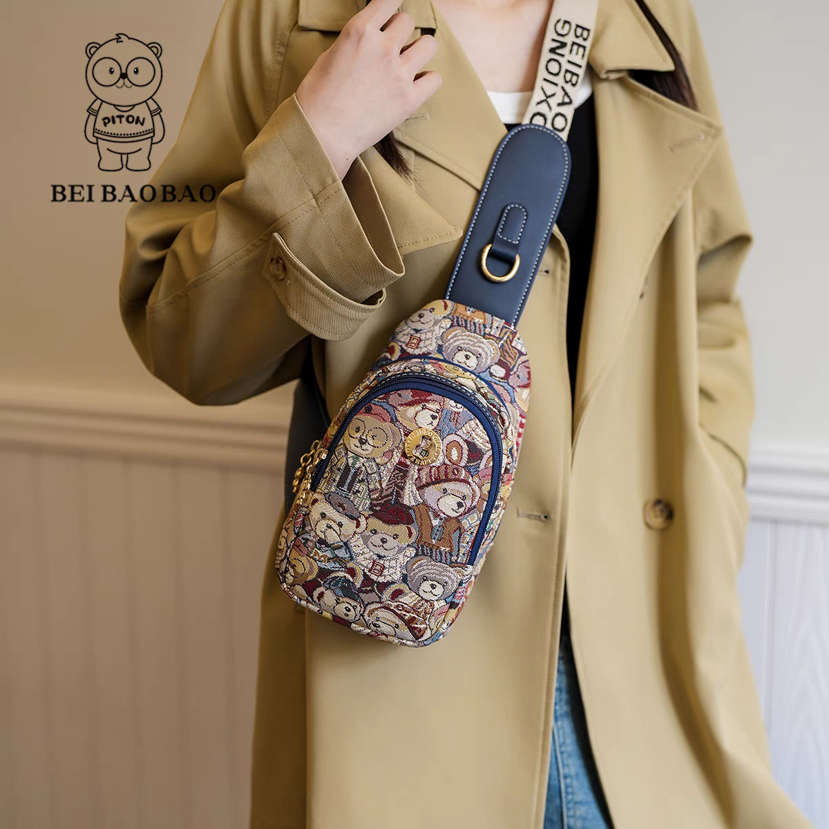 您的位置: 北包包洋气小熊高级感刺绣帆布包新款胸包女包时尚腰包小众包包女