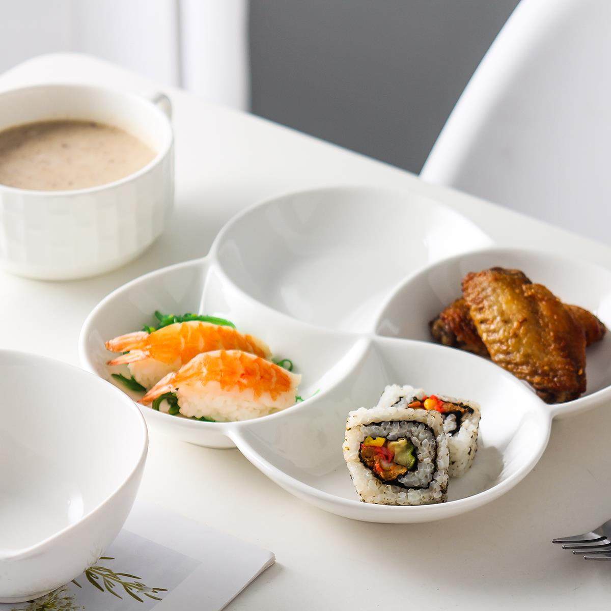 淘宝天猫创意陶瓷分格分隔餐盘减肥减脂健康糖果色四格餐盘汤碗米饭碗套装优惠券折扣价格–彩云间