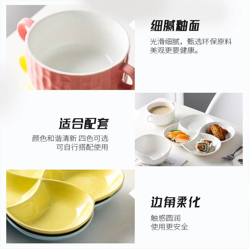 您的位置: 创意陶瓷分格分隔餐盘减肥减脂健康糖果色四格餐盘汤碗米饭碗套装