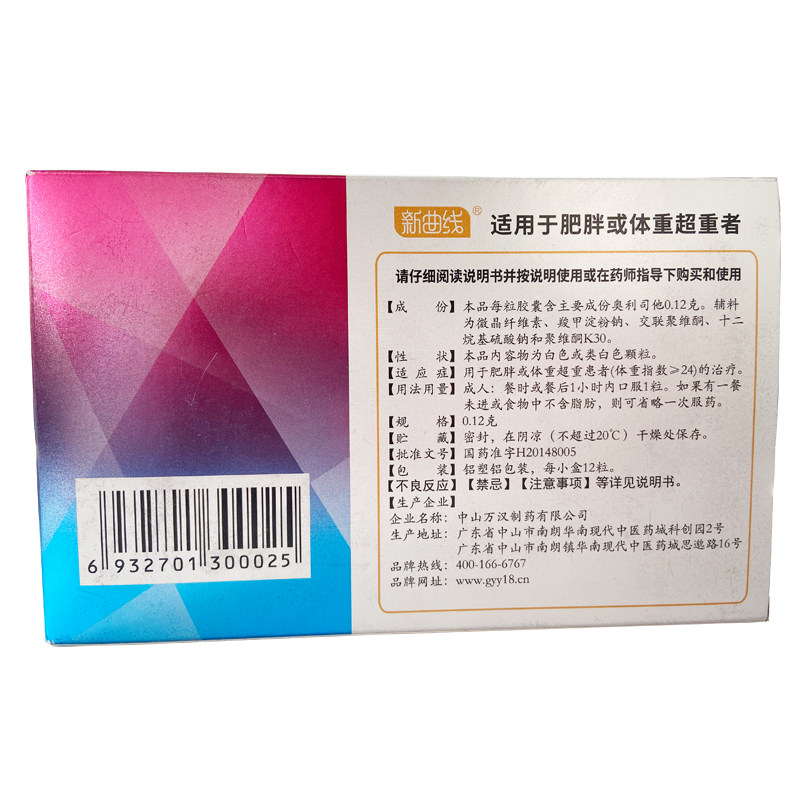 新曲线奥利司他胶囊120mg*12粒/盒 减重肥胖排油减脂OTC减肥药