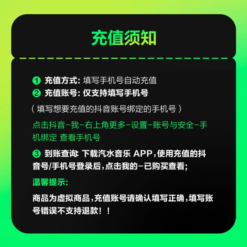 【官方直充】汽水音乐vip会员周/月/年卡抖音音乐会员 填手机号