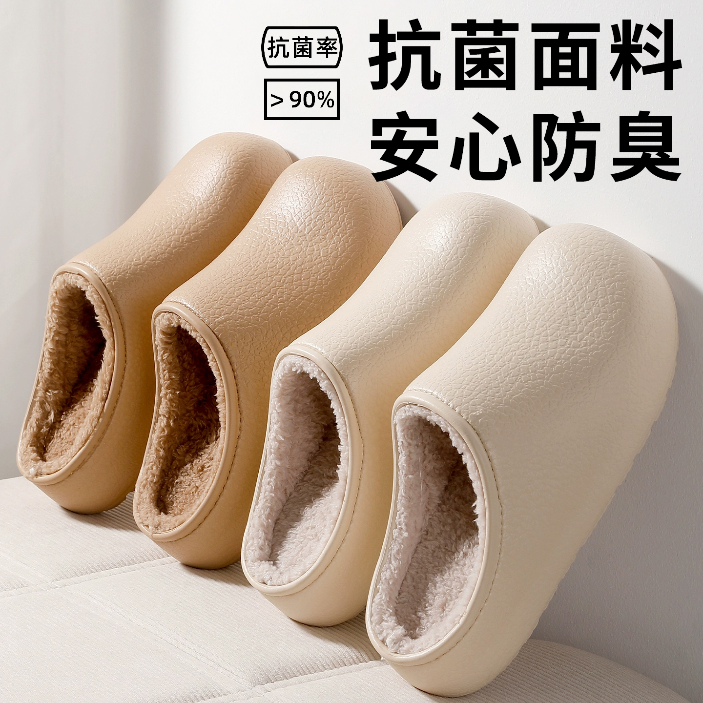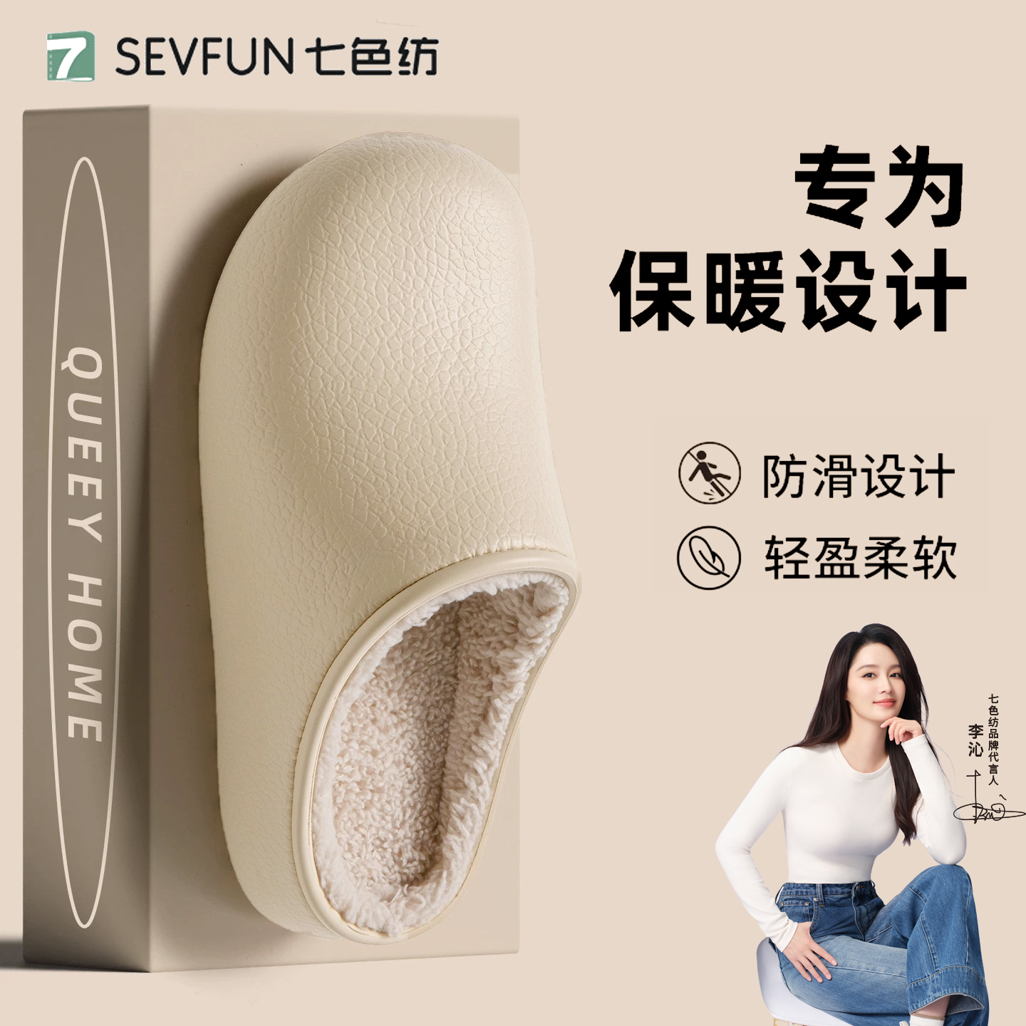 > 【李沁代言】七色纺冬季棉鞋女款室内加绒保暖外穿防水防滑棉拖男