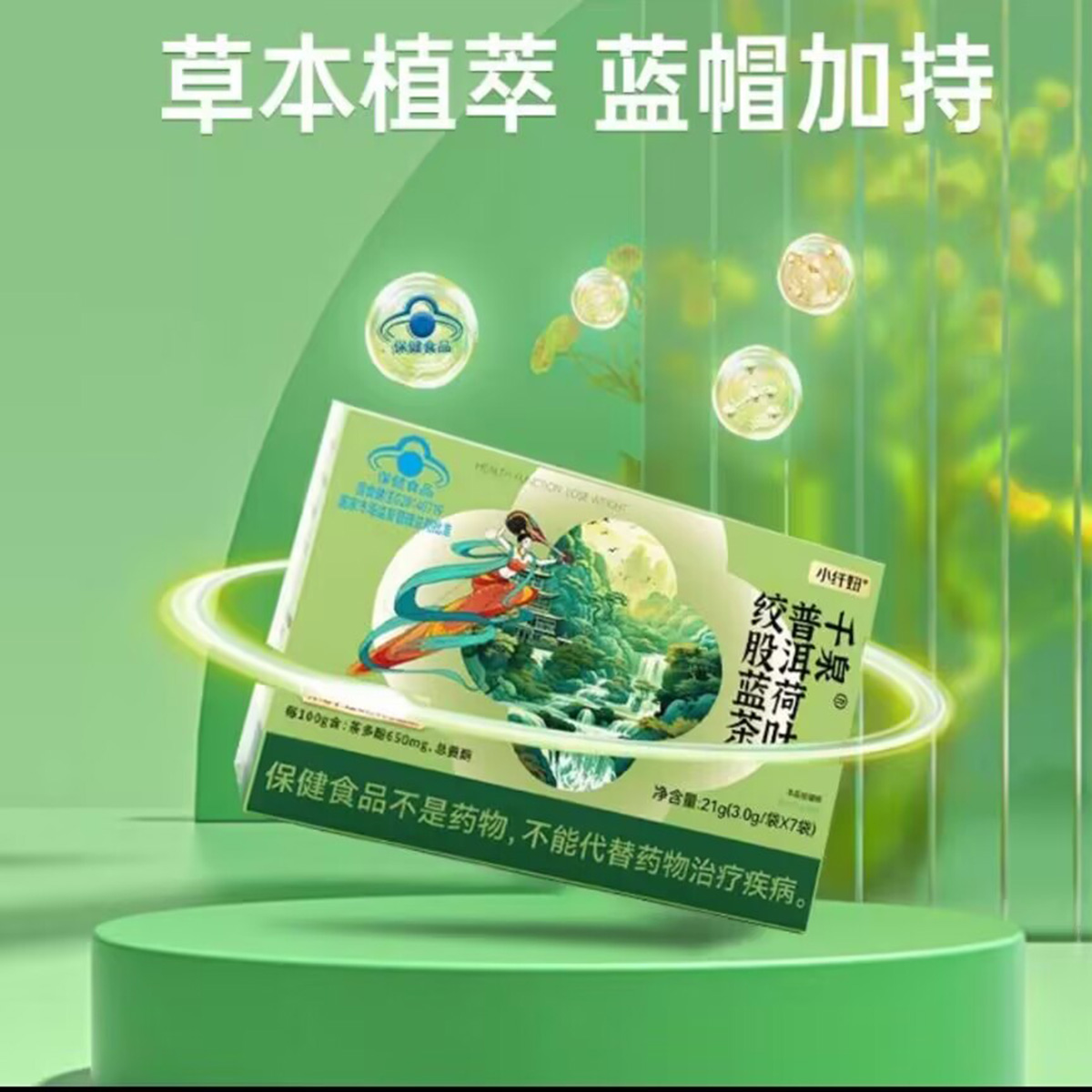 小纤妞千泉普洱荷叶绞股蓝茶蓝帽认证减肥茶降糖脂减脂排油瘦身茶