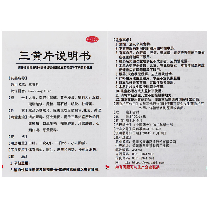 三黄片100片清热解毒片上火去火咽喉牙龈肿痛三黄解毒丸便秘心烦