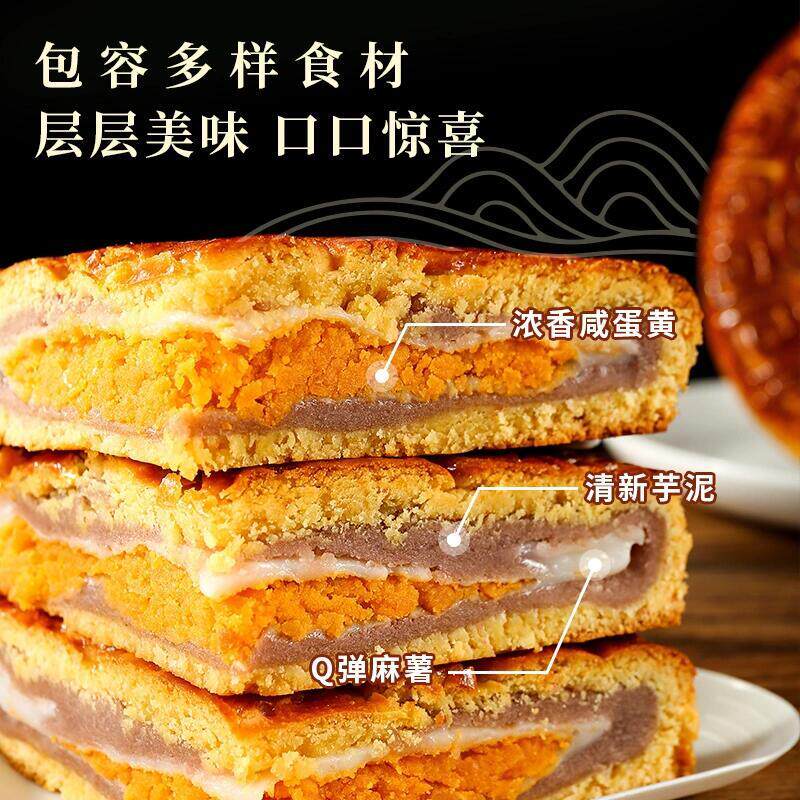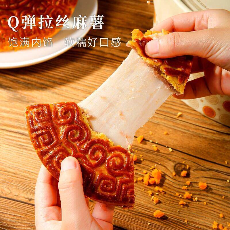 网红零食芋泥麻薯肉松大月饼咸蛋黄肉松紫薯芋泥麻薯中秋月饼