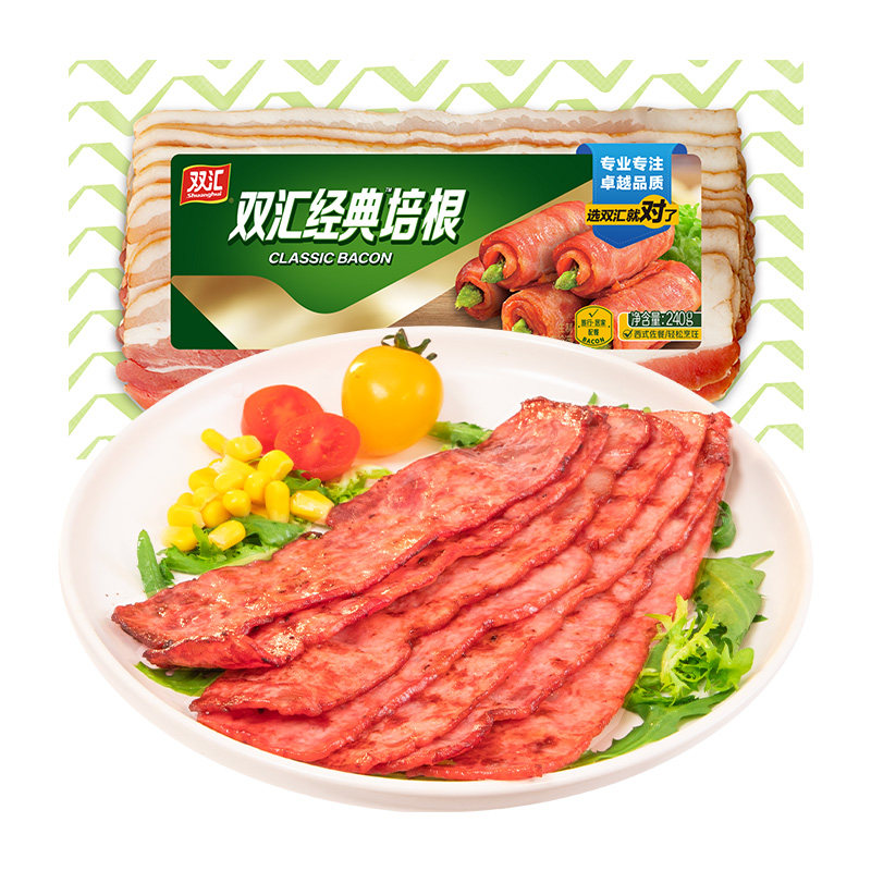 > 双汇培根肉240g培根肉早餐家用儿童手抓饼专用三明治肉片官方旗舰