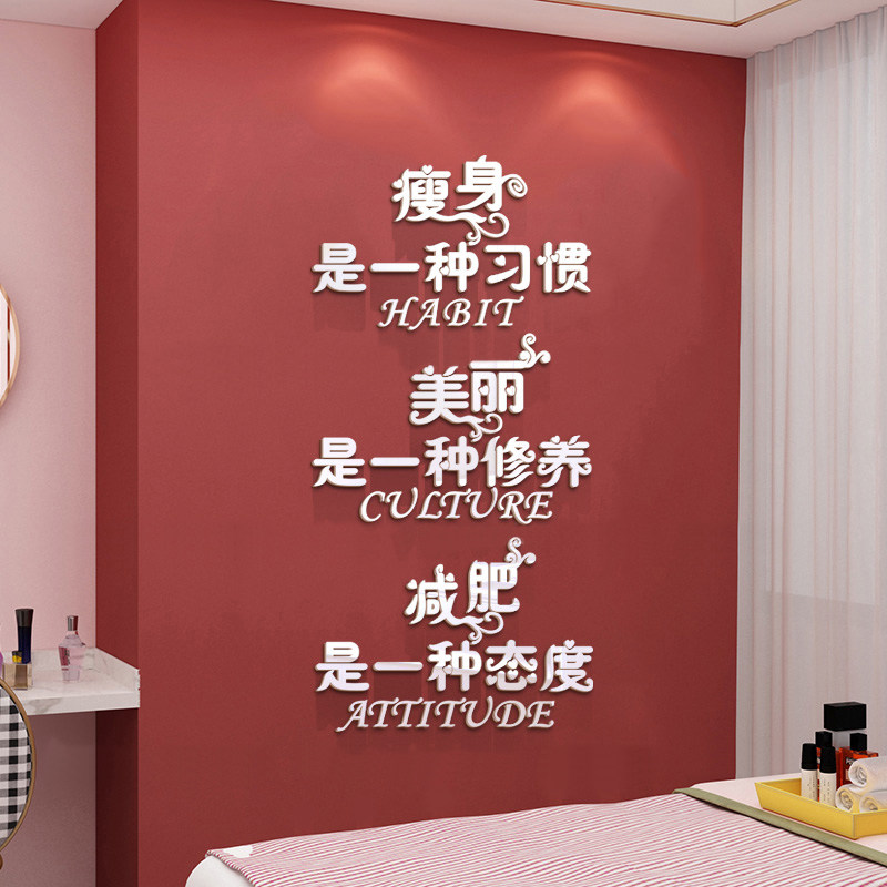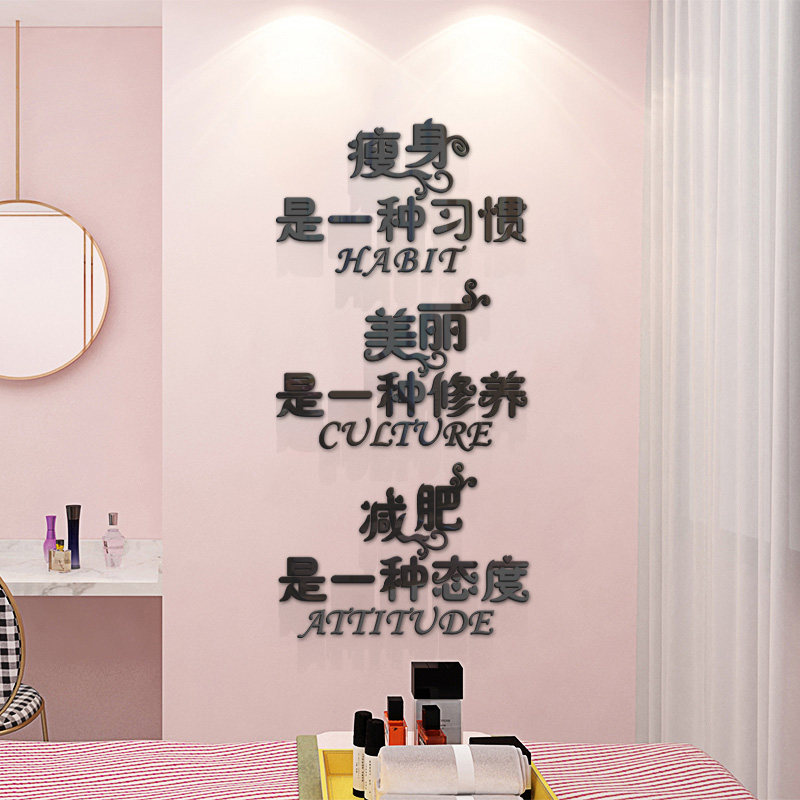 您的位置: 减肥瘦身亚克力3d立体墙贴画美容院健身房瑜伽馆店铺背景墙壁装饰