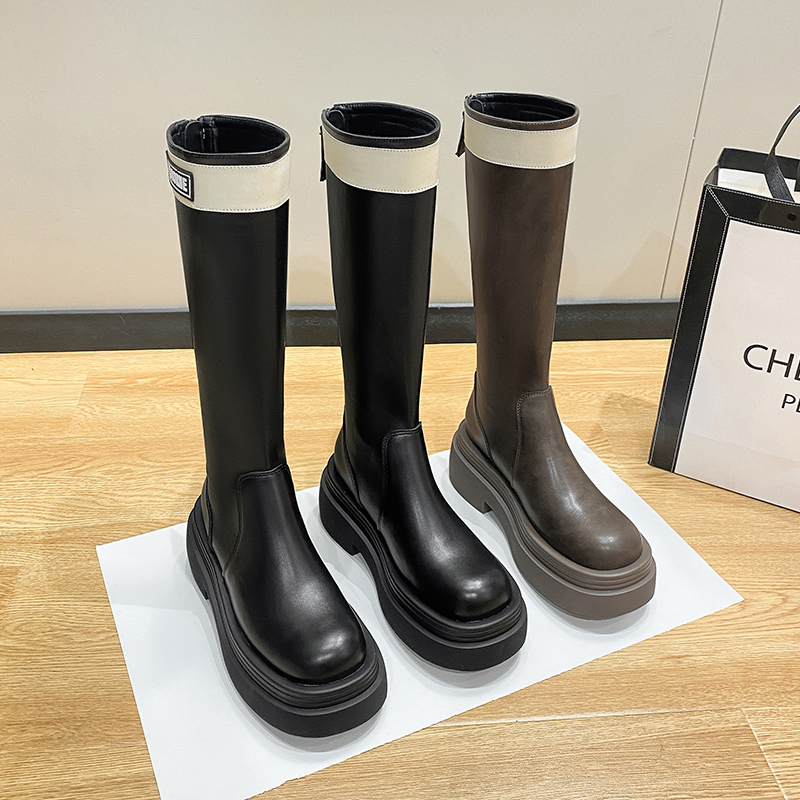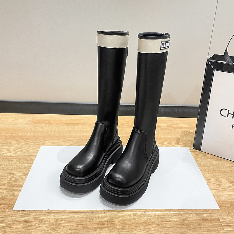 您的位置: 【双11福利特价】厚底长靴女秋英伦风拼色字母款显瘦长筒骑士靴