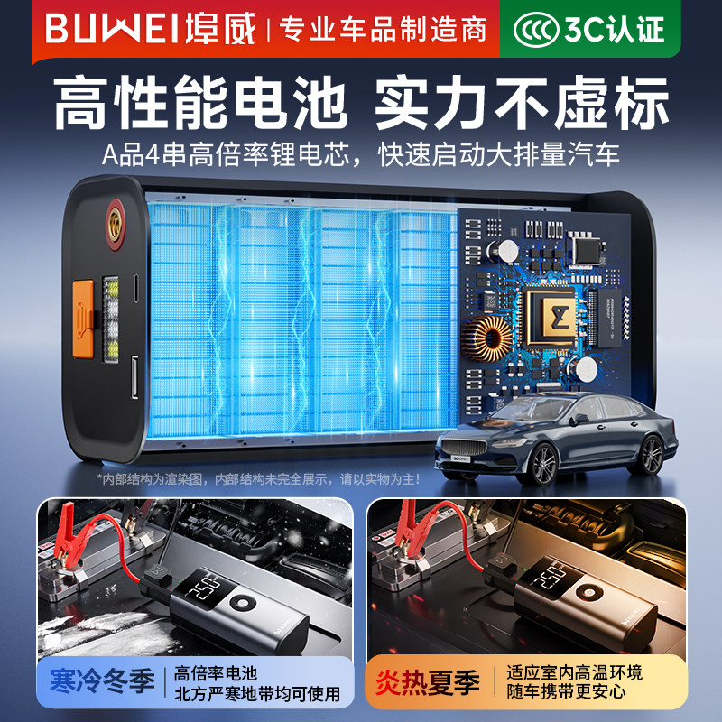 埠威BUWEI车载充气泵汽车应急启动电源电瓶搭电宝电动轮胎打气泵