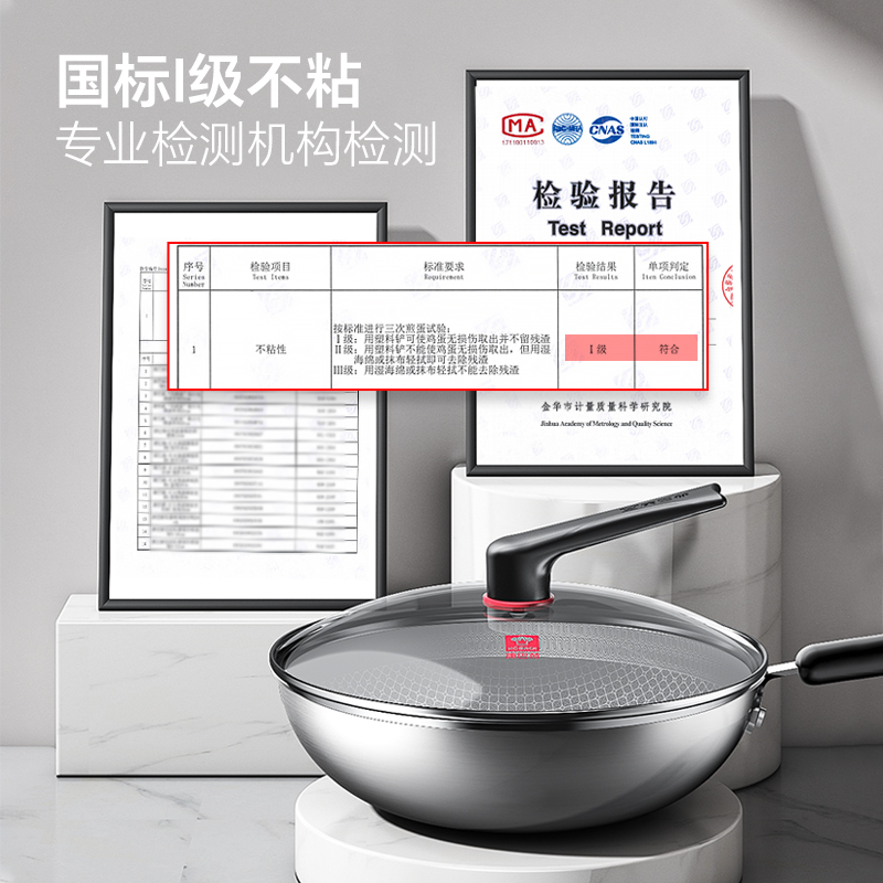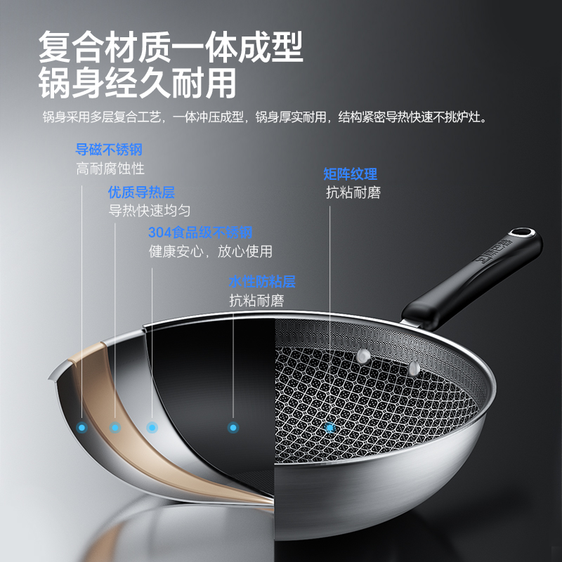 康巴赫炒锅不粘锅家用不锈钢蜂窝不粘炒菜锅电磁炉燃气灶通用